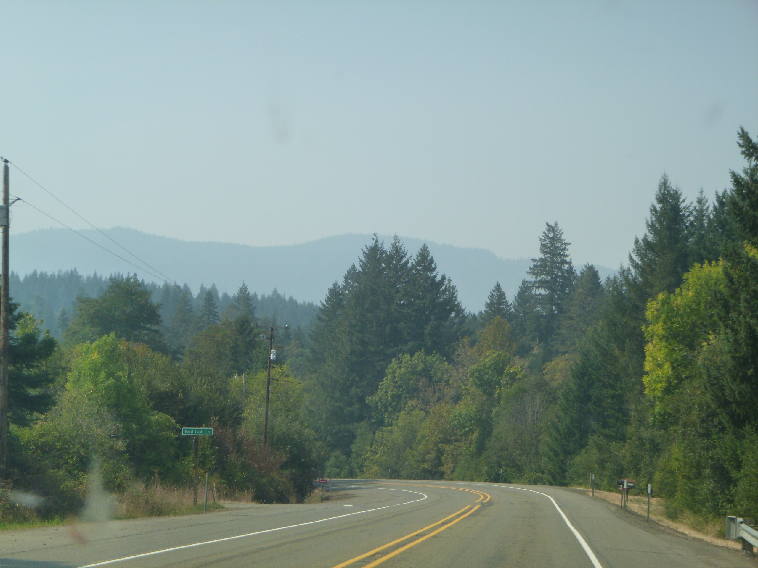 Soon, we found ourselves way down south in a town called Rogue River. We found a place to get breakfast and try to figure out what happened. We weren’t able to figure it out so we got on the I5 and headed for Glendale about 35 miles north. We got there pretty quickly and stopped to fill up the tank. We asked the guy at the station where Reuben’s Rd was. We must have misunderstood his directions so asked someone else. She gave us the correct directions and we found the right road. As we passed the lumber mill, we saw a huge sign saying that the road was closed 15 miles ahead and no through traffic was allowed. No reason given. We stopped at a local diner and I went inside to see if any of the old timers in there could help. They said there was a forest fire out there. I asked if there were any other roads. They said that there wasn’t any way to get to the coast from Glendale unless we were to go north and take hwy 42 over to Bandon.